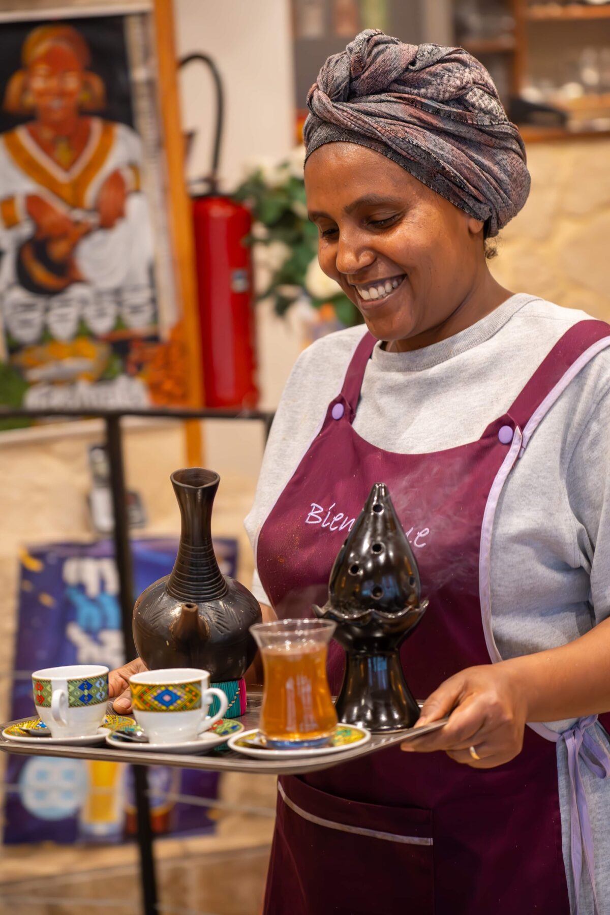 Il suffit de franchir le pas de la porte pour être transporté à des milliers de kilomètres. Chez Alaje, à cinq minutes de la place du Vieux-Marché, le voyage commence bien avant la première bouchée : l’odeur envoûtante du café éthiopien, fraîchement torréfié, accueille les curieux dans une atmosphère chaleureuse et authentique.